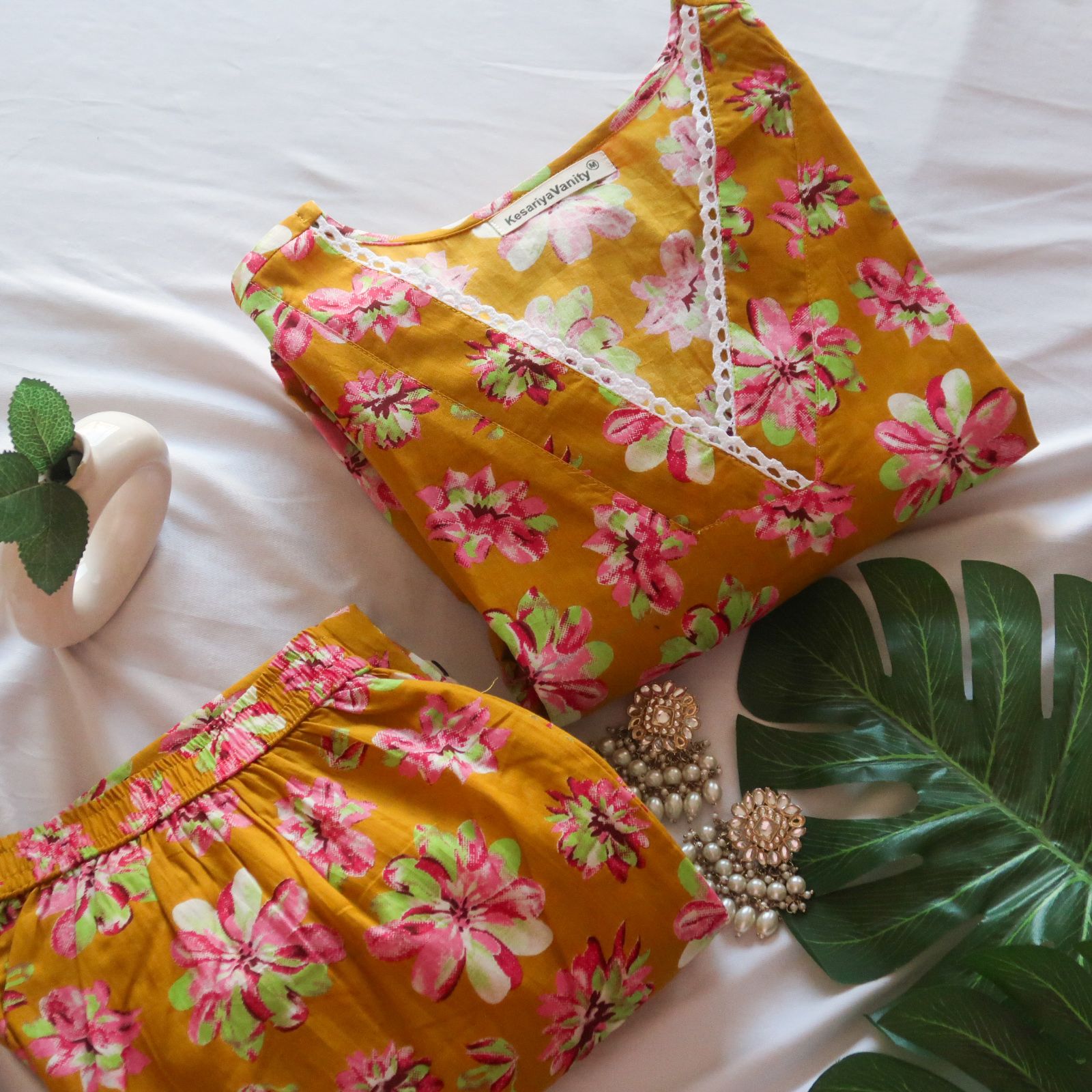 The kurta, tailored in a classic straight style. Each bloom is intricately printed, creating a mesmerizing tapestry of color and texture reminiscent of a majestic garden in full bloom.