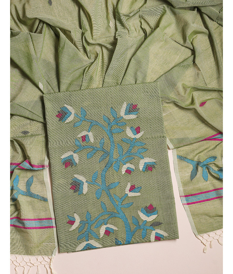 Experience the elegance of traditional craftsmanship with this pure cotton handloom Jamdhani suit set. Woven with meticulous care, the breathable cotton fabric ensures comfort while the intricate Jamdhani patterns add timeless sophistication, making it ideal for both festive occasions and everyday wear. This suit set offers a refined blend of style, comfort, and heritage artistry.