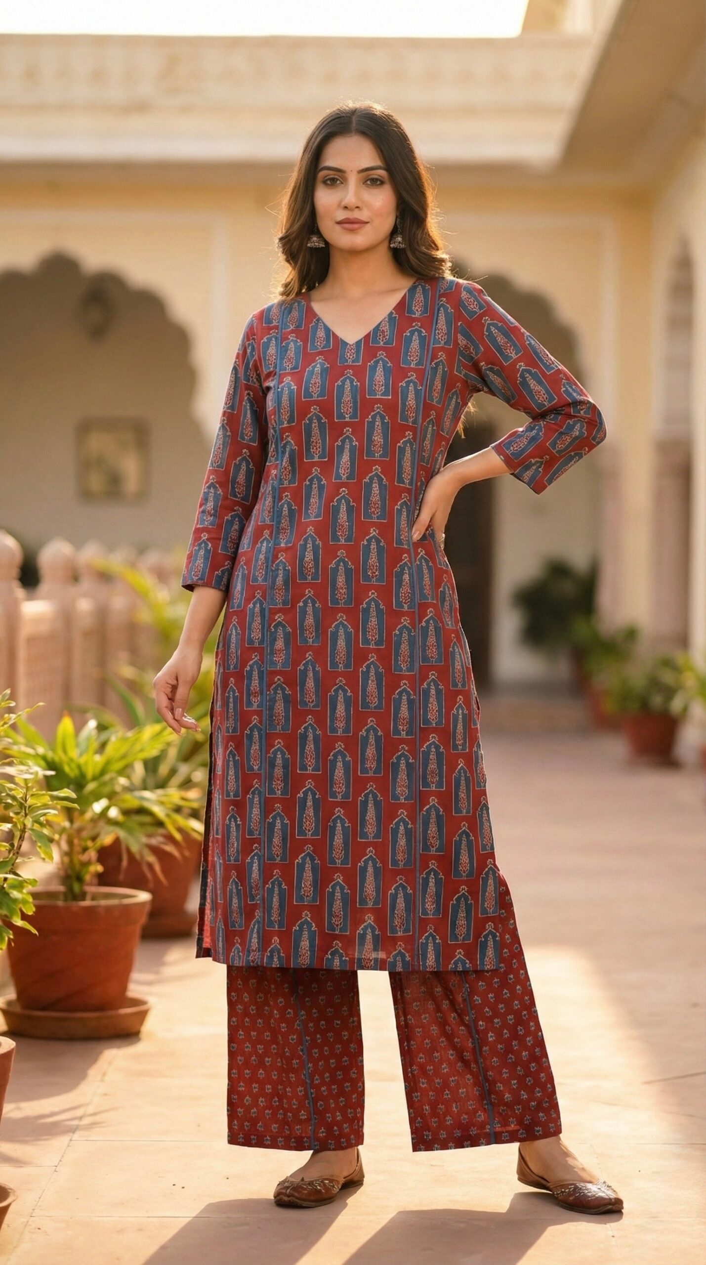 Paired with matching honey yellow pants, this ensemble offers a seamless look that’s as comfortable as it is chic. Ideal for those who appreciate timeless style and understated sophistication, this kurta-pants combination will keep you looking polished and feeling great throughout your day.